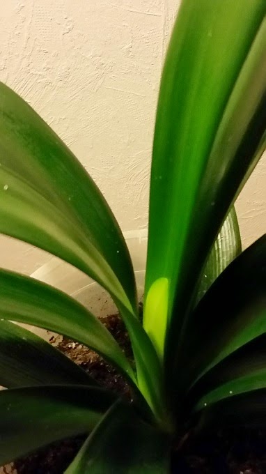 Vor ca. einem Jahr habe ich die Clivien von der Fensterbank genommen, da sie einfach zu groß wurden. Seitdem stehen sie auf Blumensäulen im Wohnzimmer. Die Folge war, daß sie ihre Blüten im vergangenen Jahr nicht entwickeln konnten. Die Blüten sind zwischen den Blättern „steckengeblieben“.